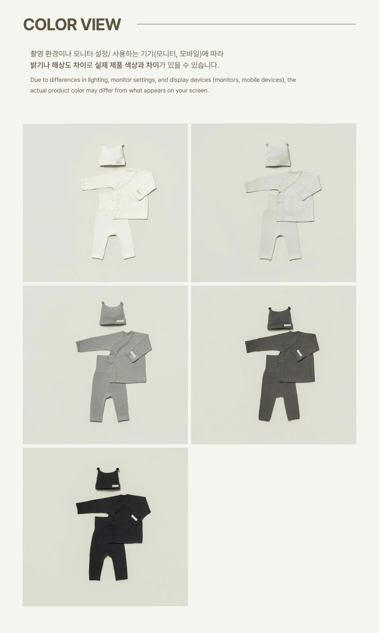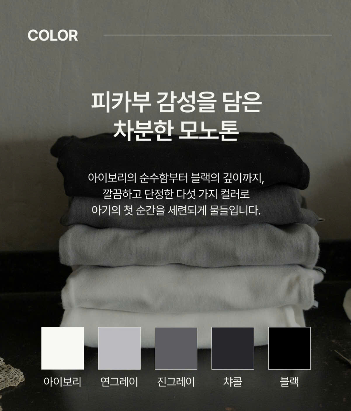 Bảng màu: invory, light grey, drak grey, charcoal, black